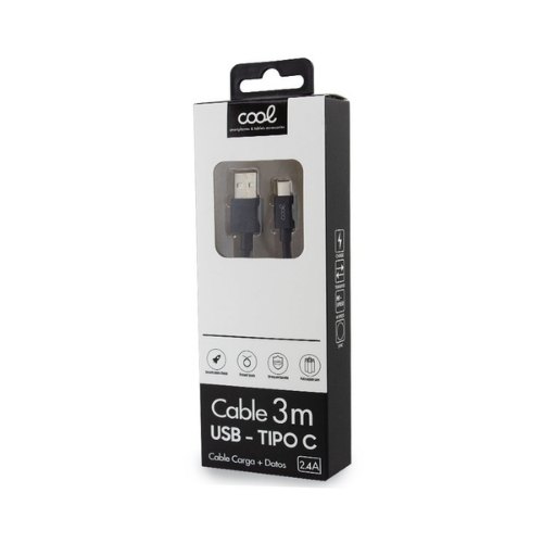 CABLE COOL USB A USB-C 3M BLACK 3M NEGRO UNIVERSAL 2.4 AMP