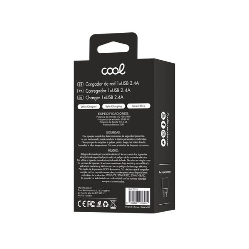 CARGADOR COOL 1USB 12W 2.4 AMP WHITE