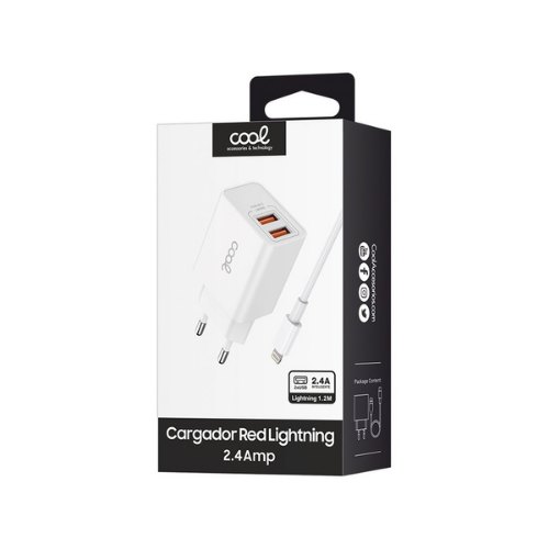 CARGADOR COOL 2USB 2,4 AMP CABLE LIGHTNING 1.2M 2USB 2,4 AMP BLANCO COMP. IPHONE IPAD CABLE 1.2M