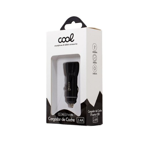 CARGADOR COOL COCHE 1 USB 20W CARGA RAPIDA BLACK 1USB 2,4AMP 20WCARGA RAPIDA NEGRO UNIVERSAL