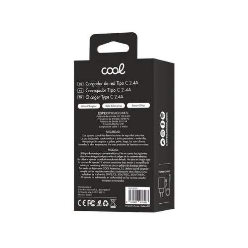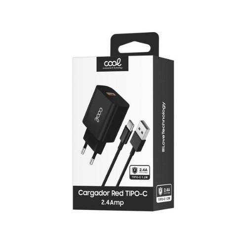 CARGADOR COOL USB-C 12W 2.4 AMP BLANCK CABLE .,2M 1USBC 2,4AMP 12W NEGRO CABLE 1.2M