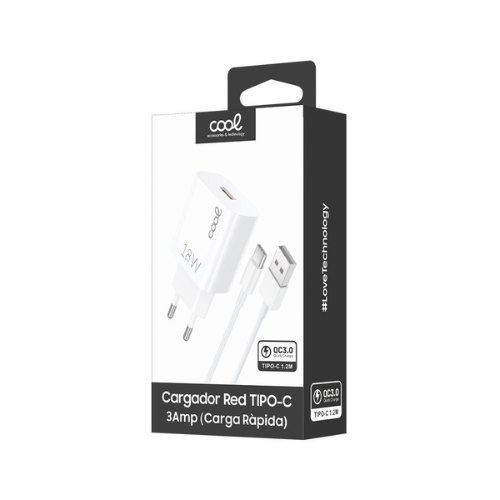 CARGAGOR COOL USB-C 3AMP CARGA RAPIDA WHITE CABLE 1USBC 2,4AMP BLANCO CARGA RAPIDA CABLE
