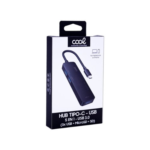 HUB TIPO-C UNIVERSAL COOL 5 EN 1 3XUSB 3.0 SD MICRO SD ALUMINIO