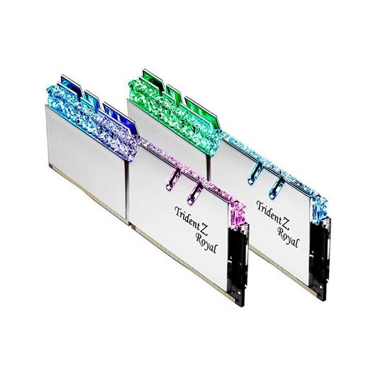 Diseñada con 8 zonas RGB controlables y probada en cuanto a confiabilidad, compatibilidad y rendimiento en una amplia gama de placas base, que ofrece velocidades increíbles y más, Trident Z Royal es la mejor memoria RGB de alto rendimiento. Diseñada de forma exclusiva para dispersar y refractar la luz de las 8 zonas de LED RGB de cada módulo, brindando una magnífica pantalla de iluminación en la carcasa de tu PC. Mantén la memoria fría de manera eficiente con sólidos termoplásticos cortados por CNC, galvanizados con un brillante color plateado. El software de control de iluminación Trident Z Royal ofrece más de una docena de efectos de iluminación y administración de hasta 4 perfiles de iluminación, así como la capacidad de controlar cada módulo de forma individual o sincronizada, para que puedas personalizar tu propia combinación de colores al máximo. Deja que la imaginación sea tu musa. Cada módulo Trident Z Royal está construido con circuitos integrados de memoria seleccionados a mano en una PCB de 10 capas personalizada para garantizar la mejor integridad de la señal para un rápido rendimiento de overclock. Independientemente de las plataformas Intel o AMD, cada kit de memoria Trident Z Royal se prueba para la compatibilidad y confiabilidad, para que puedas construir un PC verdaderamente personalizado con una amplia gama de placas base.