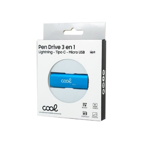 PENDRIVE 64GB 3 EN 1 COOL AZUL
