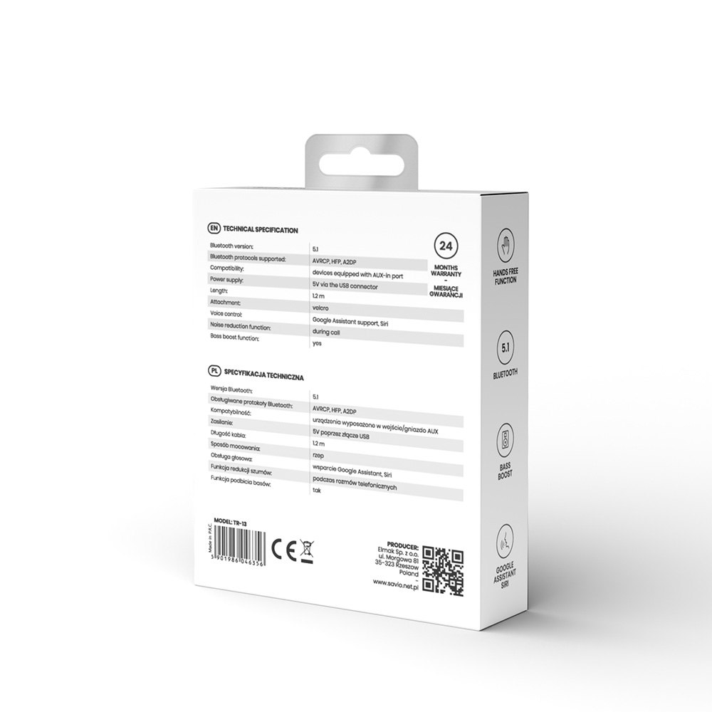 TRANSMISOR AUXILIAR BLUETOOH 5.1 COCHE SAVIO TR-13 MANOS LIBRES BLUETOOTH 5.1 GOOGLE ASSISTANT SIRI