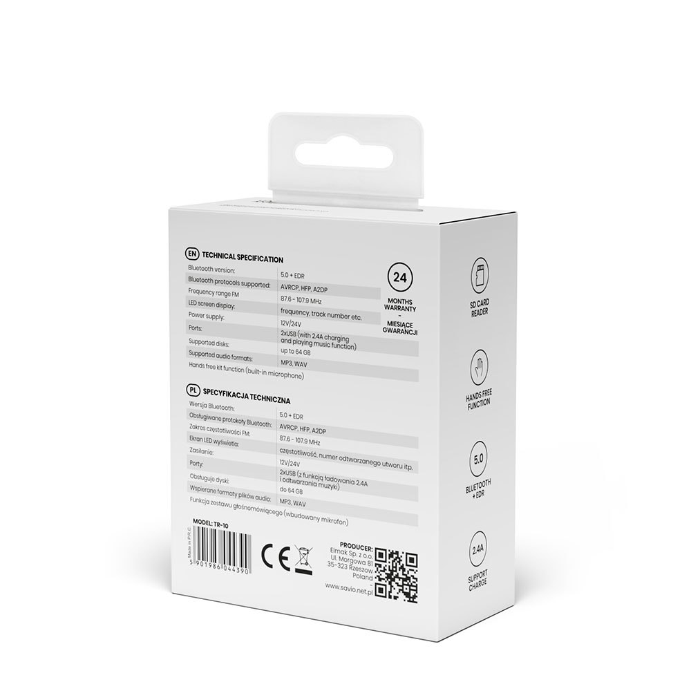 TRANSMISOR FM COCHE CON CARGADOR 2.4A SAVIO TR-10 MANOS LIBRES MICRO SD BLUETOOTH 5.0